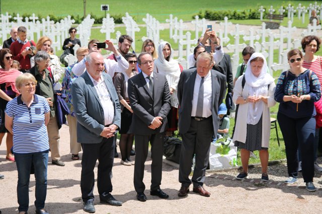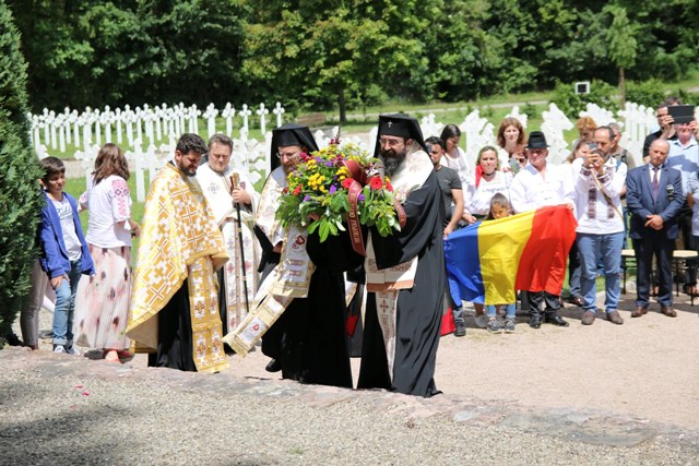 După Sfânta Liturghie oficiată în capela din apropierea cimitirului românesc din Alsacia, ÎPS Iosif, Mitropolitul Europei Occidentale și Meridionale a mers împreună cu PS Sofian Brașoveanul, Episcopul vicar al Arhiepiscopiei Ortodoxe Române a Germaniei, Austriei și Luxemburgului, alături de preoți și diaconi de la parohiile românești din Germania și Franța și de numeroși credincioși români în procesiune spre cimitir, unde a fost adus un omagiu celor 687 de soldați români. Aici, după slujba parastasului au fost depuse coroane de flori la crucea-monument de către oficialități ale Statului Român, cei doi ierarhi și alți participanți.