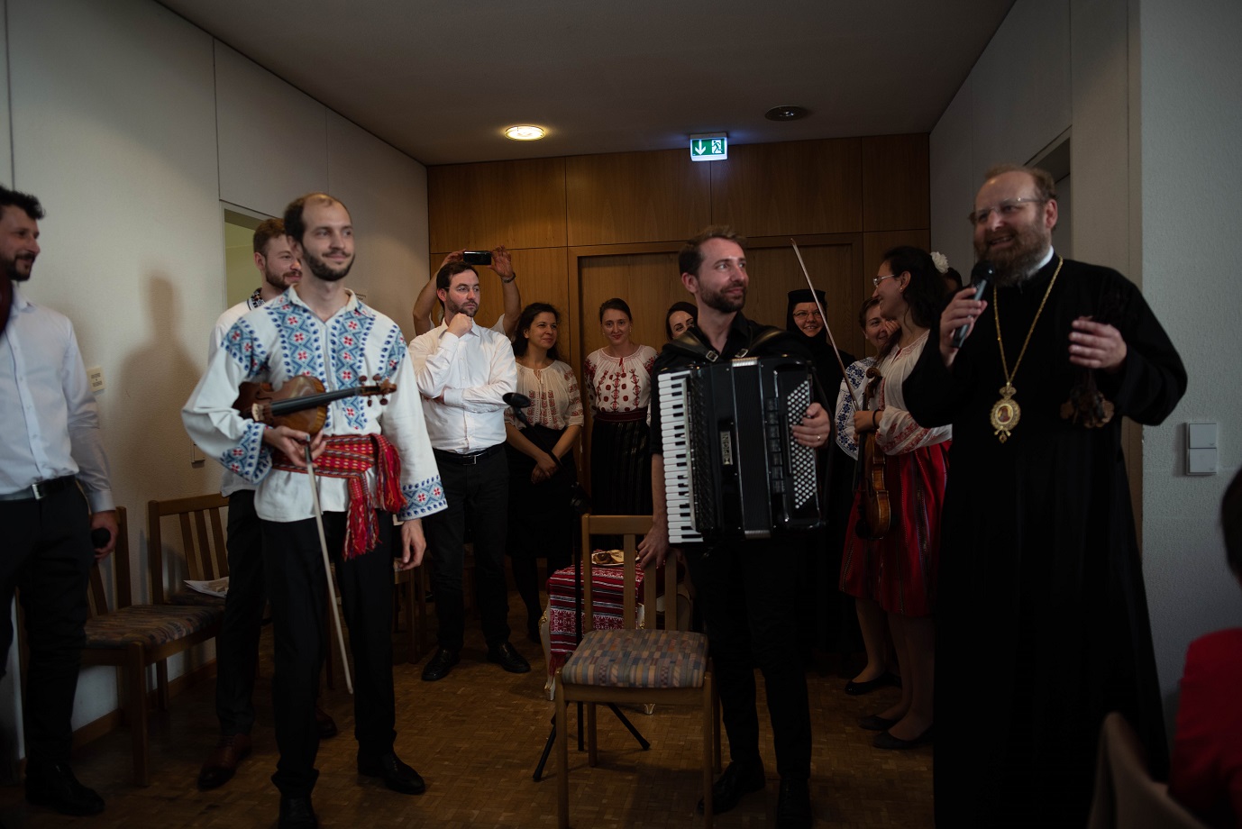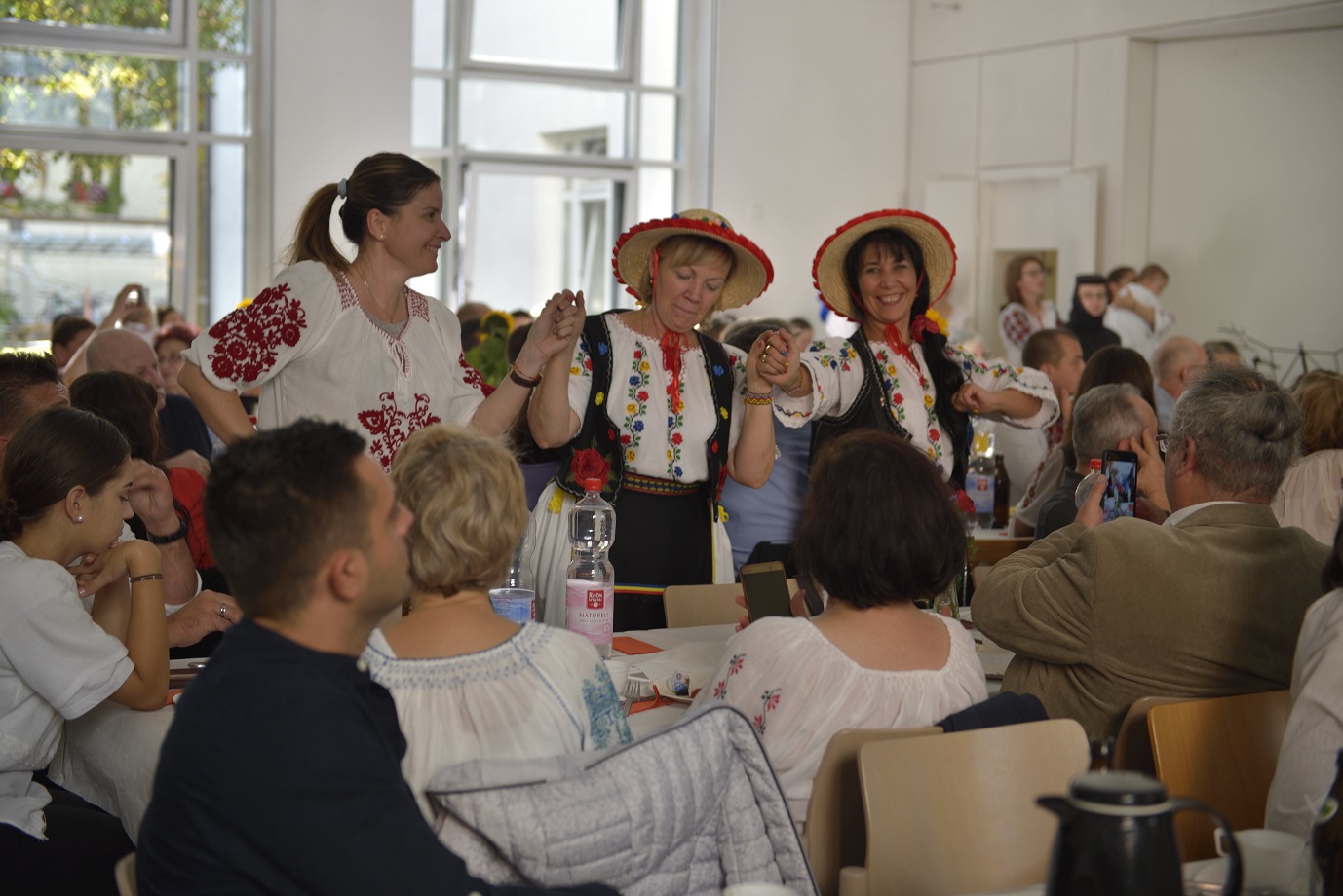 Bucuria comuniunii din biserică s-a continuat la agapa în cadrul căreia a fost prezentat un frumos şi variat program artistic. Maica Onufria împreună cu "Trupa Virgula" au prezentat pe scurt o şezătoare românească, întregită şi continuată de mai mulţi tineri talentaţi, care au cântat atât vocal cât şi instrumental spre bucuria şi încântarea participanţilor. Copiii nu s-au lăsat nici ei mai prejos şi au completat programul cu vioiciunea lor.