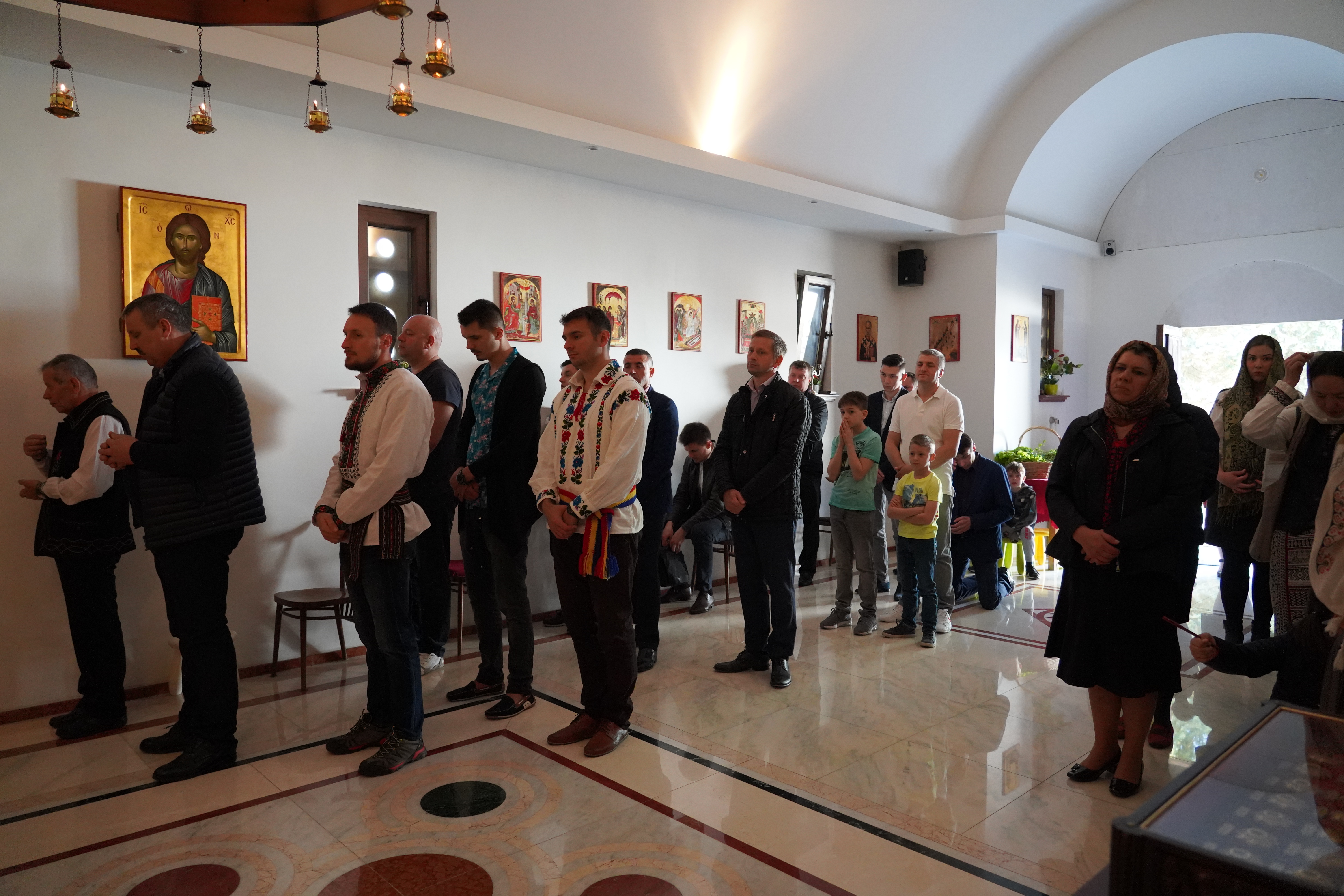 Alături de maici și credincioșii numeroși ai Mănăstirii Namur, tinerii au participat și la Sfânta și Dumnezeiasca Liturghie din Duminica Floriilor sau a Întrării Domnului Iisus Hristos în Ierusalim, săvârșită de Pr. Arhim. Daniil Oltean și diaconul Teodor Tăbuș (Parohia „Duminica Tuturor Sfinţilor“ Köln, Germania), mulți dintre ei împărtășindu-se cu Sfintele Taine. La rugămintea și cu binecuvântarea Pr. Arhim. Daniil, cuvântul de învățătură a fost rostit în duminica Floriilor de către diaconul Teodor Tăbuș. Un aspect central pe care părintele diacon l-a evidențiat pe marginea pericopei evanghelice a fost acela de întâlnire reală, fondatoare, și nu de intersectare, între Cuvântul lui Dumnezeu, Sfânta Împărtășanie, ca modalități concrete de cunoaștere a lui Iisus Hristos, rămase nouă astăzi creștinilor, și om, în ziua de astăzi, chiar dacă omul se află și în stare de putrefacție spirituală, duhovnicească, din cauza păcatului. Această întâlnire organică dintre Cuvântul lui Dumnezeu, Sfinta Taină a Împărtășaniei și om produce, în fond, nu numai o „răsucire“ salvatoare de moment, de oportunitate a ființei și existenței omului în totalitatea sa, ci și o inviere a omului în sensul tare al cuvântului, așa cum a fost și în cazul cu minunea învierii lui Lazăr din morți, deși acesta era în stare de descompunere. Totuși din întâlnirea fizică cu Hristos și la porunca Sa, Lazăr a putut să fie înviat, să fie redat îm mod palpabil rudelor și familiei sale. Un alt aspect evidențiat a fost și acela al relației organice dintre învierea unui om prin Cuvântul lui Dumnezeu și Sfintele Taine, și verticalitatea de esență tare a omului, care decurge din această înviere a omului, și însușirea acesteia, totodată, de către om. La sfârșitul slujbei Pr. Arhim. Daniil a rostit un cuvânt de mulțumire adresat atât tinerilor ATORG și NEPSIS Belgia cât și celor care au participat la Sfânta Liturghie, invitându-i la sfârșit pe toți la masa de prânz, oferită și organizată de Mănăstirea Namur, în colaborare cu enoriașii mănăstirii.