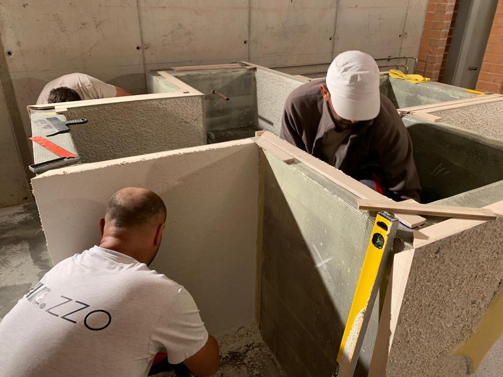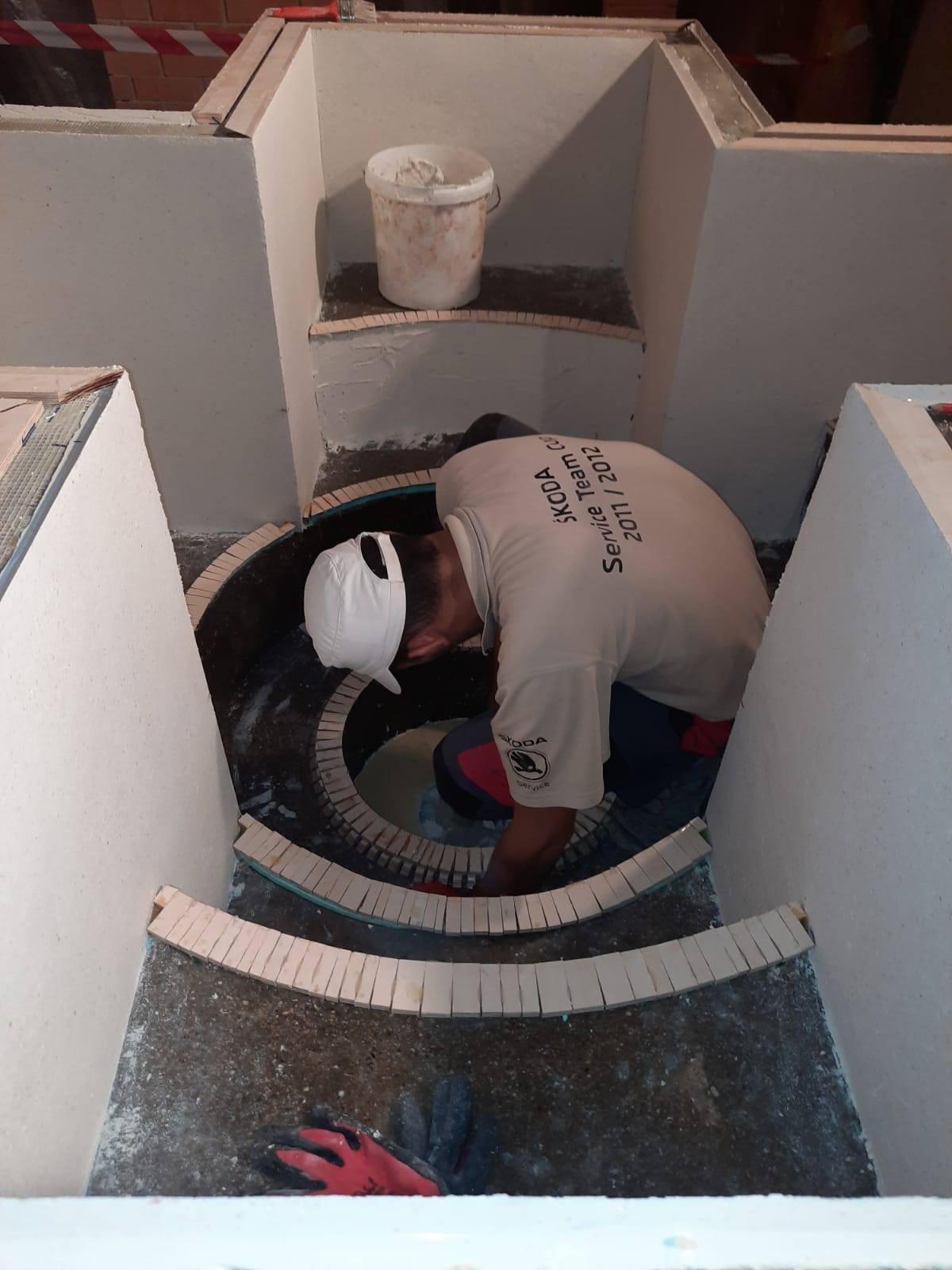 respectiv la realizarea băncii perimetrale care o înconjoară.