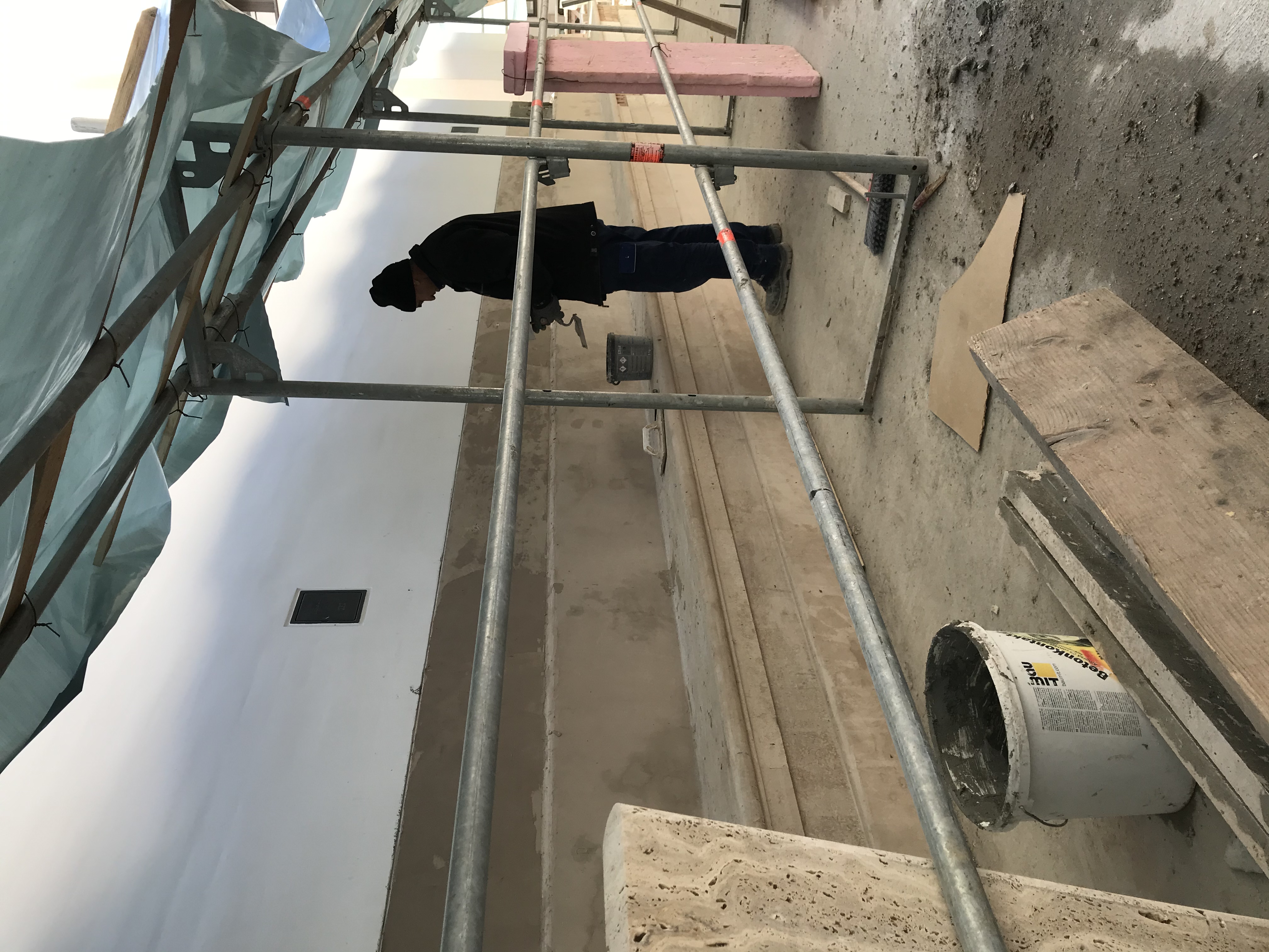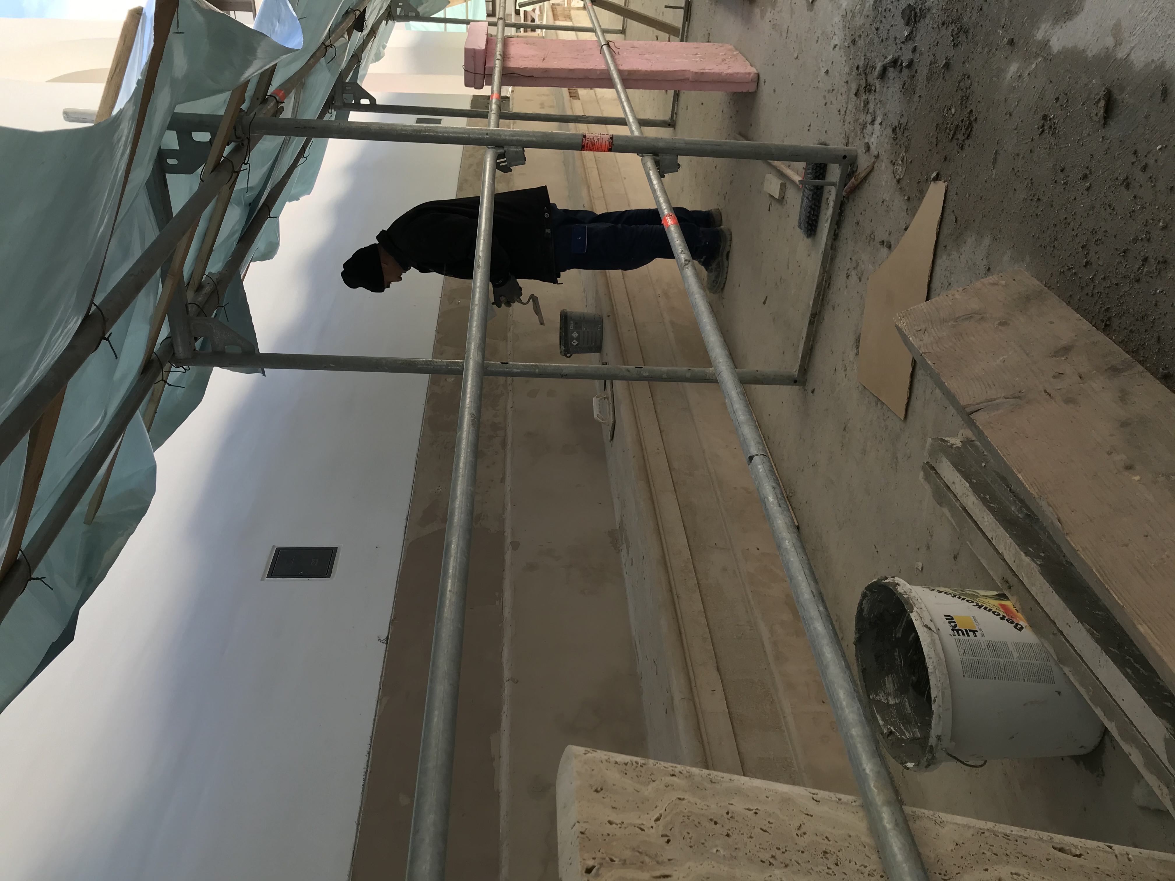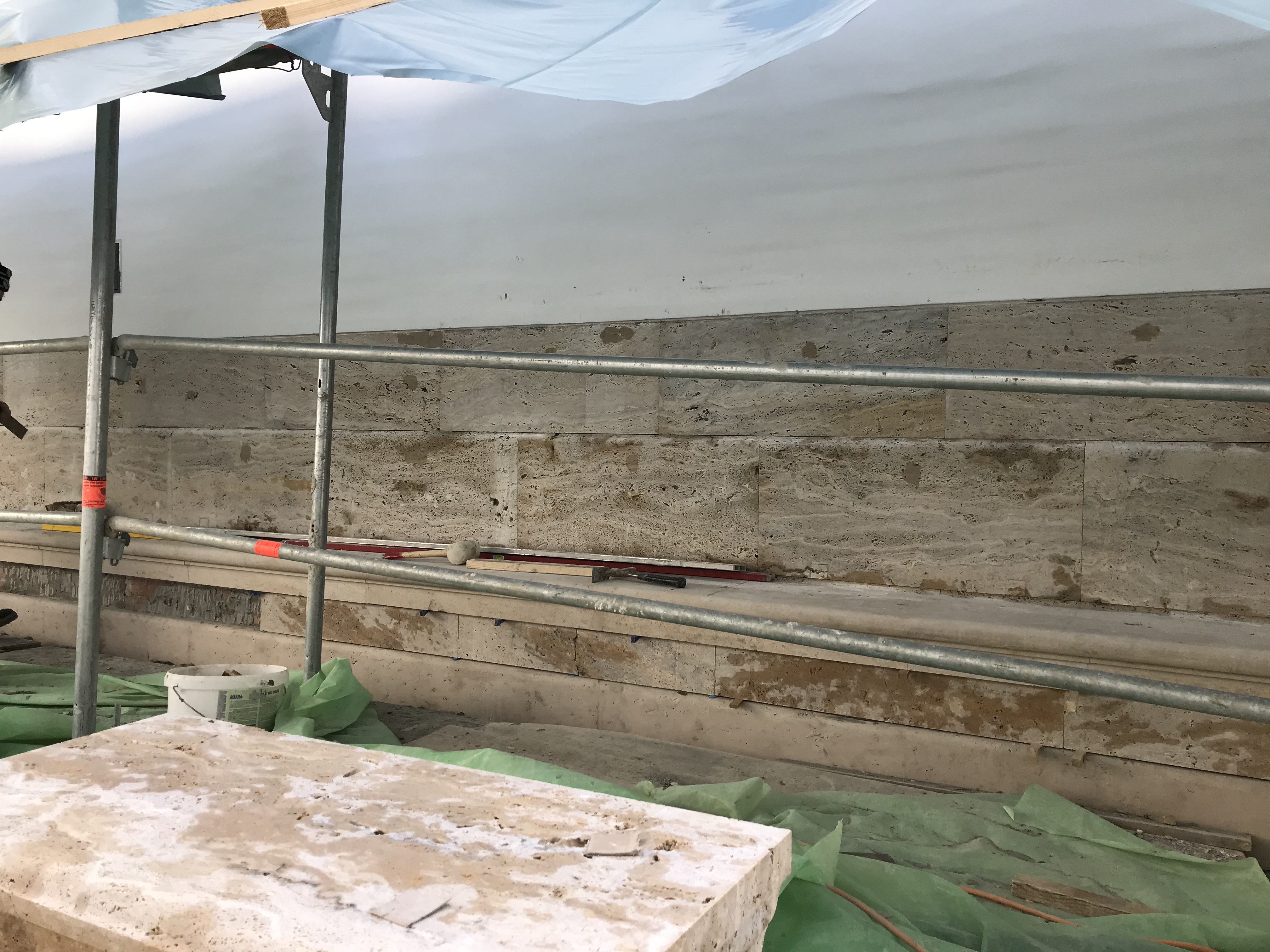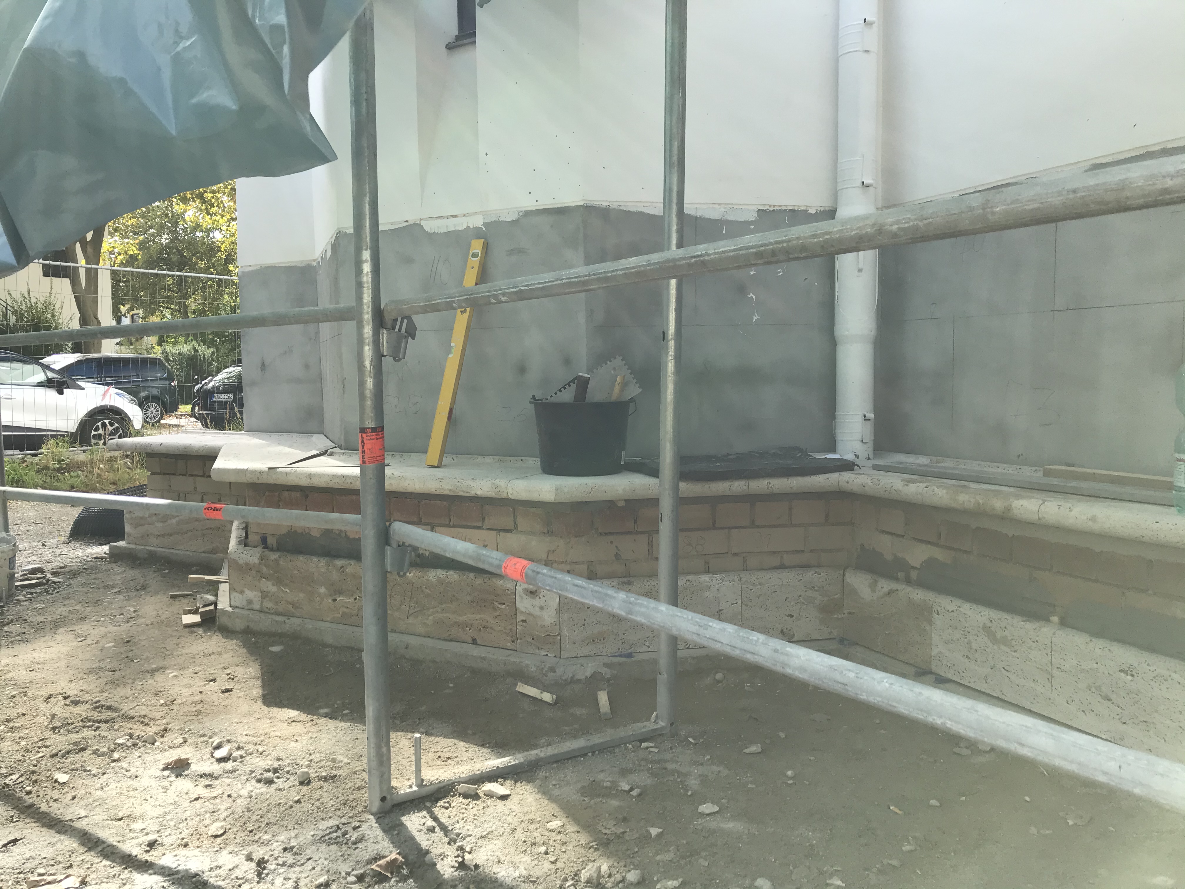 intens s-a lucrat la placarea cu piatră a bazei exterioare a bisericii,