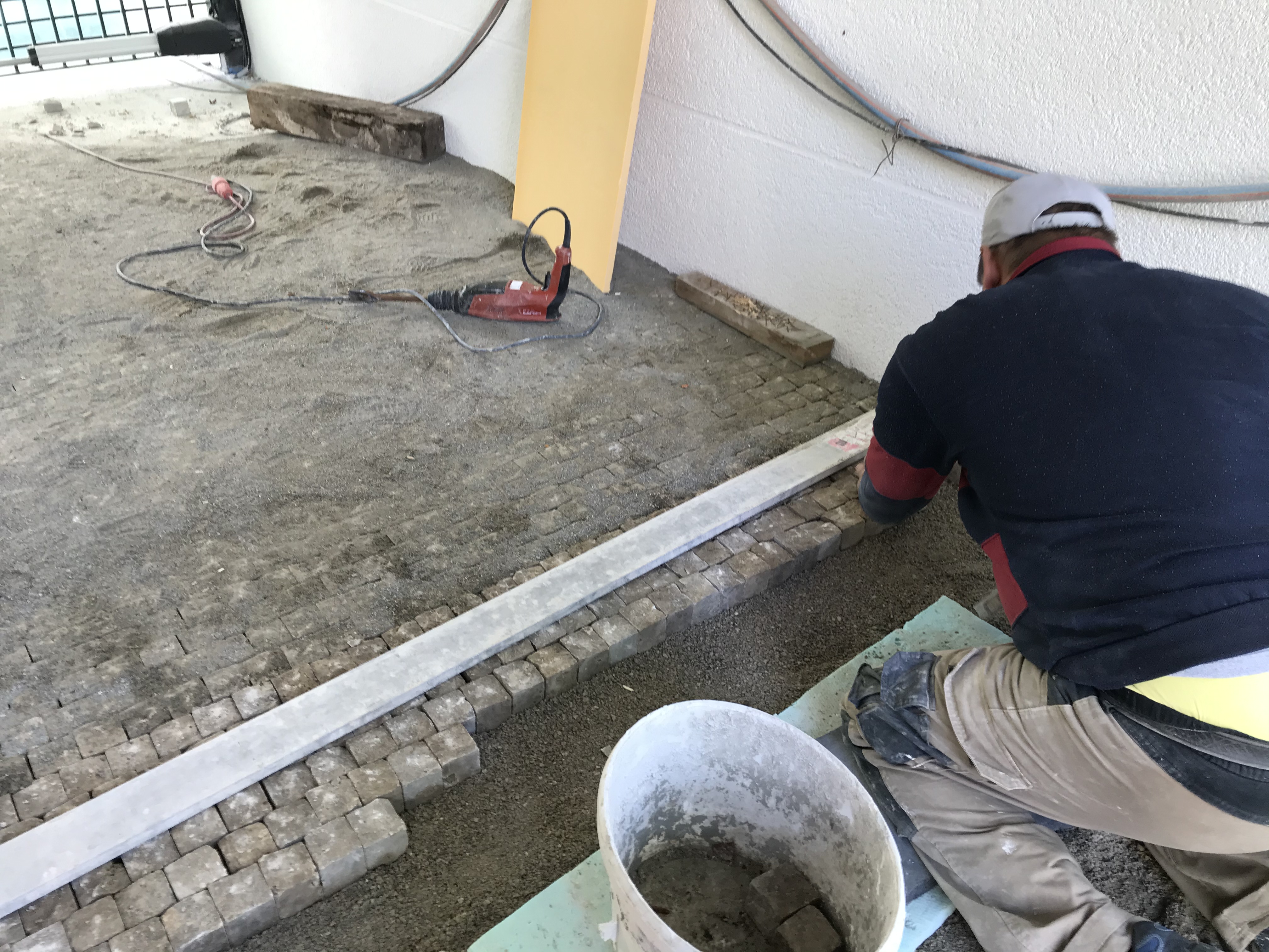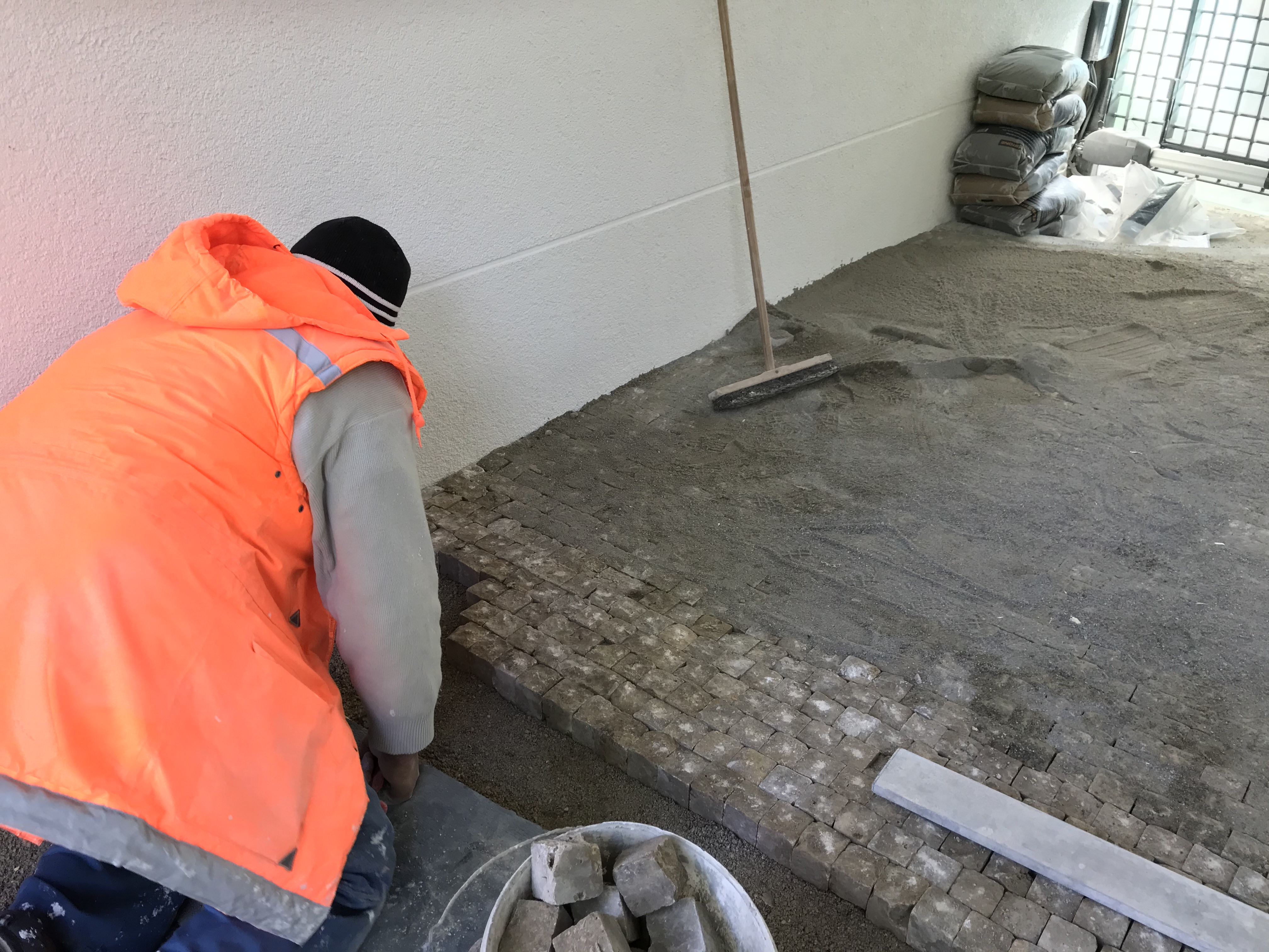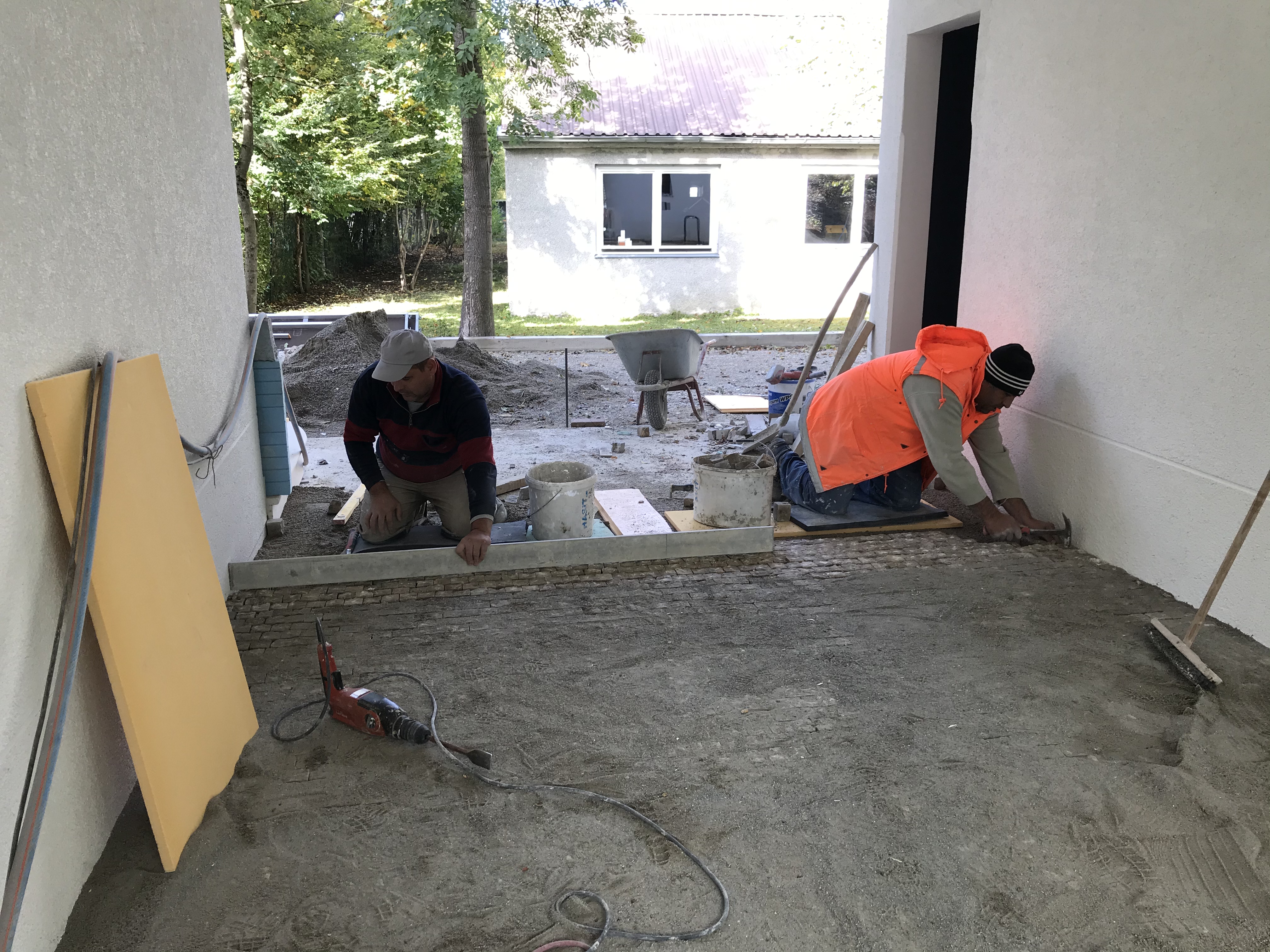 dintre clădiri. În curte, s-a început pavajul cu piatră cubică. Foarte