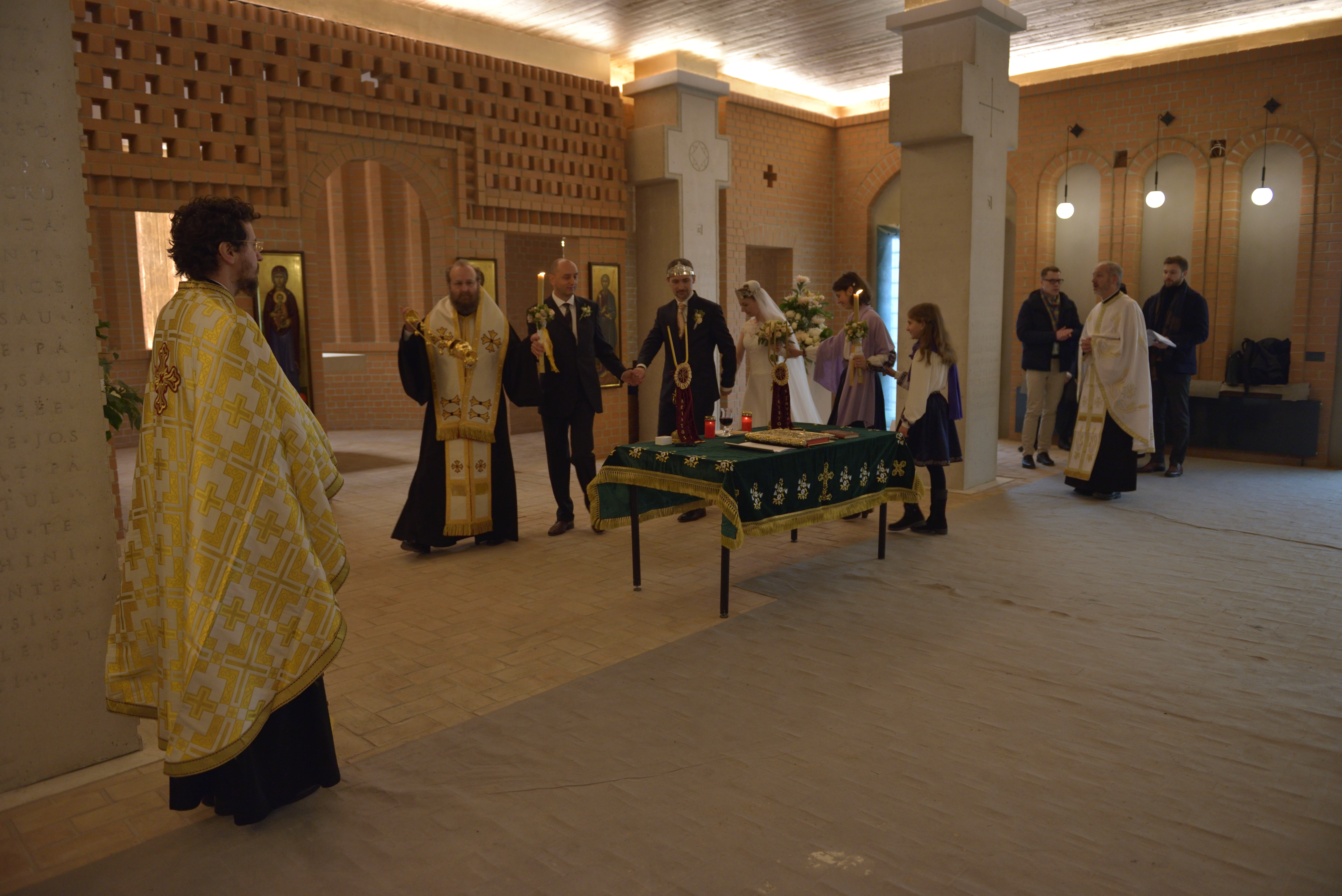 În luna noiembrie, în condiţii de distanţare sanitară, impuse în efortul de stăvilire a pandemiei de Covid-19, am săvârşit cununia Mariei Drăgan cu Christian Schmidt. A fost primul eveniment cu caracter comunitar săvârşit în Sala Crucilor, aflată în subsolul bisericii Aşezământului Bisericesc. Să binecuvânteze Dumnezeu acest început, astfel încât Aşezământul să devină un loc în care să se concentreze viaţa comunitară a românilor ortodocşi din München şi din întreaga Germanie, un loc din care să iradieze credinţă, încredere şi speranţă pentru comunitatea românească şi creştină.