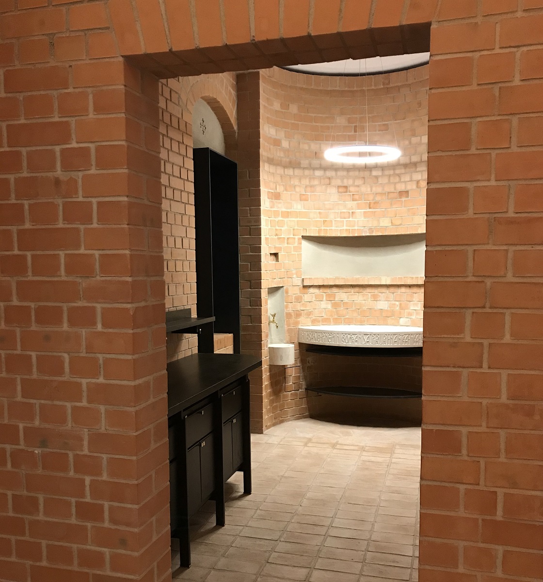 După ce la finele lunii noiembrie a fost montat mobilierul din sala Crucilor de către firma producătoare Pandomour din Ploieşti, în luna decembrie şantierul s-a odihnit, muncitorii bucurându-se de o binemeritată vacanţă. Un cuvânt de deosebită apreciere şi mulţumire se cuvine adresat firmei Pandomour pentru realizarea la o calitate excepţională a elementelor de mobilier. Dumnezeu să-i binecuvinteze pe toţi cei care şi în anul 2020 s-au implicat în diferite moduri în ridicarea Aşezământului nostru: proiectanţi, constructori, donatori, sprijinitori şi rugători.