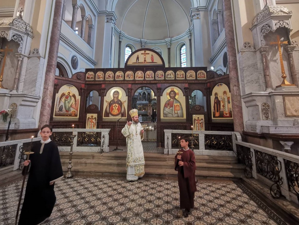 PS Sofian a subliniat în cuvântul de învățătură legătura dintre pomenirea morților și sărbătoarea Pogorârii Duhului Sfânt. Referitor la lucrarea de rectitorire în duh ortodox-bizantin a Bisericii (foste romano-catolice), cumpărată acum 7 ani de către parohie, PS Sa a accentuat faptul, că prin această strădanie, se scrie o pagină de istorie. Prin lăcașurile sfinte construite sau cumpărate și reamanajate în Diaspora, credincioșii români influențează în mod pozitiv și mărturisitor istoria societății europene.