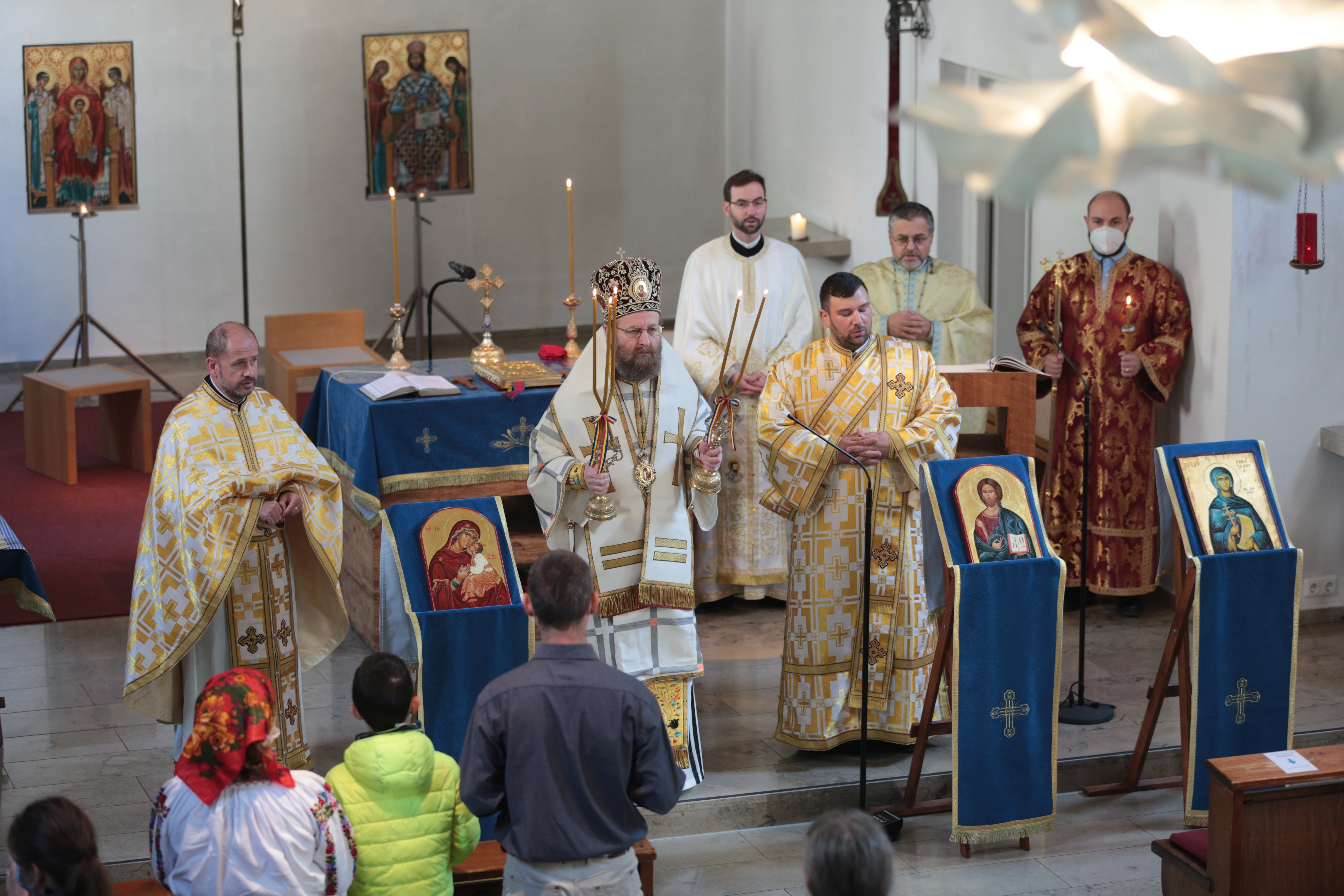 Bucuria sărbătorii a continuat duminică, 17 octombrie, cu Sf. Liturghie arhierească, oficiată de către PS Dr. Sofian Brașoveanul, înconjurat de pr. paroh Alexandru Nan, pr. Dumitru Aman (Garmisch-Partenkirchen), pr. George Saner (preot misionar al Centrului bisericesc din München) și diaconul Nicolae Canciu.