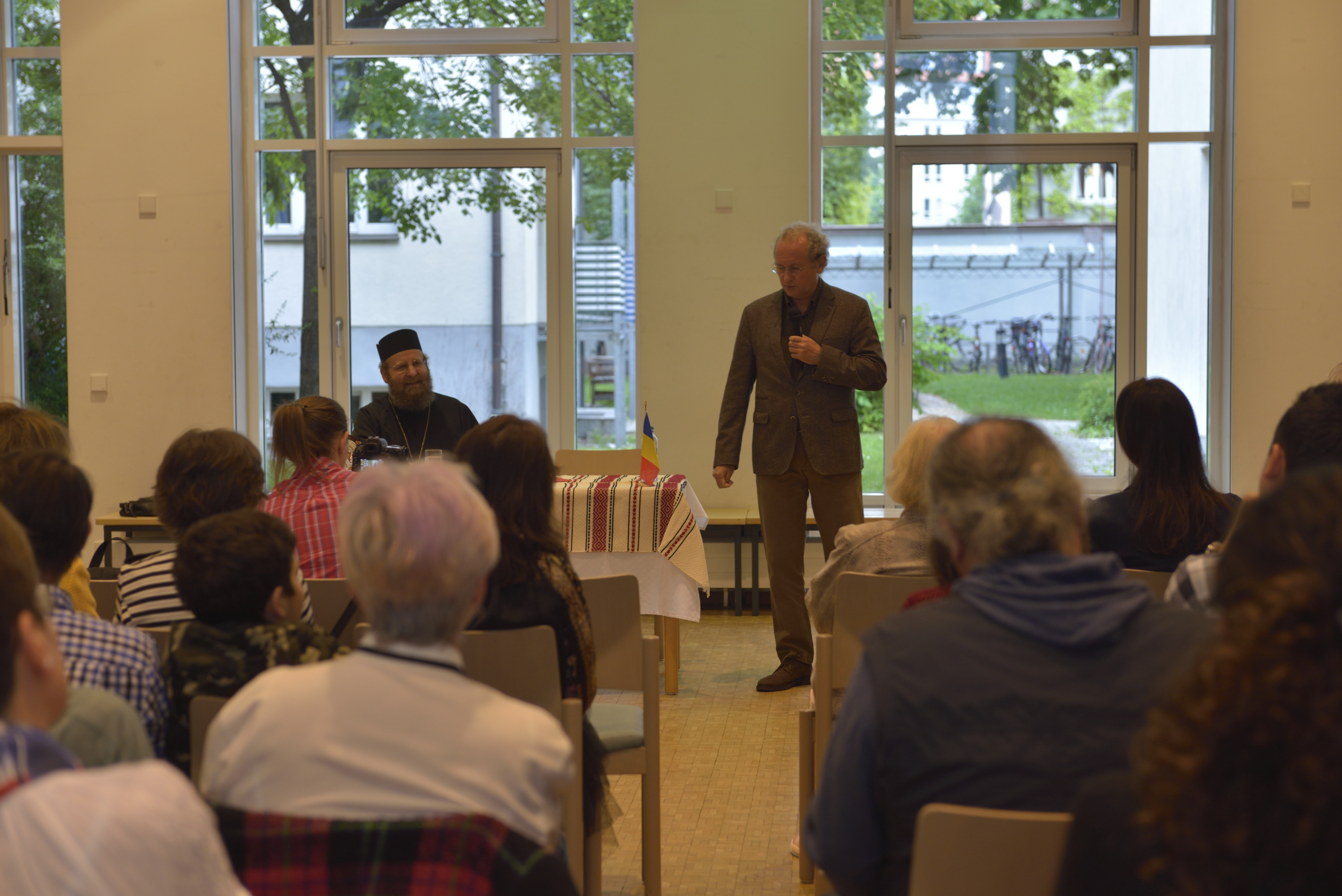 Răspunzând invitaţiei Centrului nostru Bisericesc Ortodox din München, binecunoscutul apologet ortodox, maestrul Dan Puric ne-a făcut deosebita cinste şi bucurie de a reveni pentru a treia oară la München, pentru a conferenţia sâmbătă, 25 mai 2019, pe tema: "Poporul român dinspre patimi spre înviere".