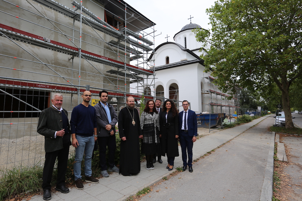 Mai întâi, delegația a participat la Sf. Liturghie, doamna Ministru având prilejul să întâlnească şi să cunoască în mod direct comunitatea noastră, după care a vizitat Aşezământul Bisericesc în construcţie în München-Aubing. Acolo, Domnia Sa a apreciat proiectul ca fiind cel mai elaborat din proiectele Bisericii Ortodoxe Române din afara Ţării, foarte armonios, practic şi cu bună măsura gândit şi executat în mod excepţional. A apreciat, de asemenea, că văzând dezvoltarea extraordinară a proiectului probabil mai mulţi oameni vor dori să şi susţină, inclusiv financiar, realizarea lui, iar odată finalizat Aşezământul va deveni un catalizator al comunităţii româneşti din Germania.