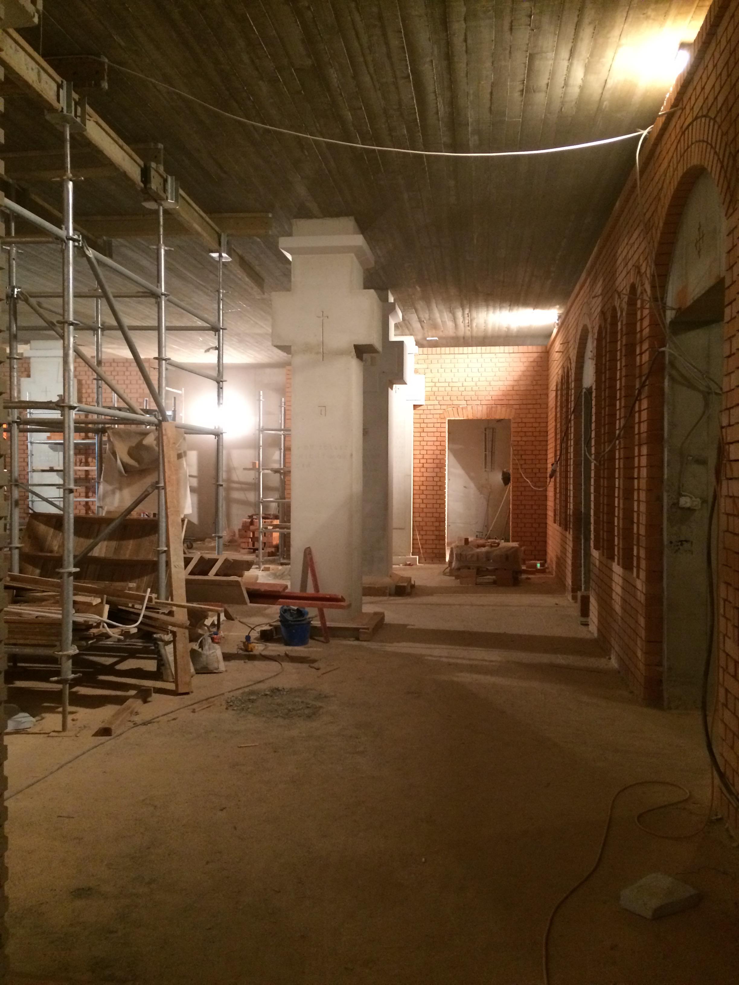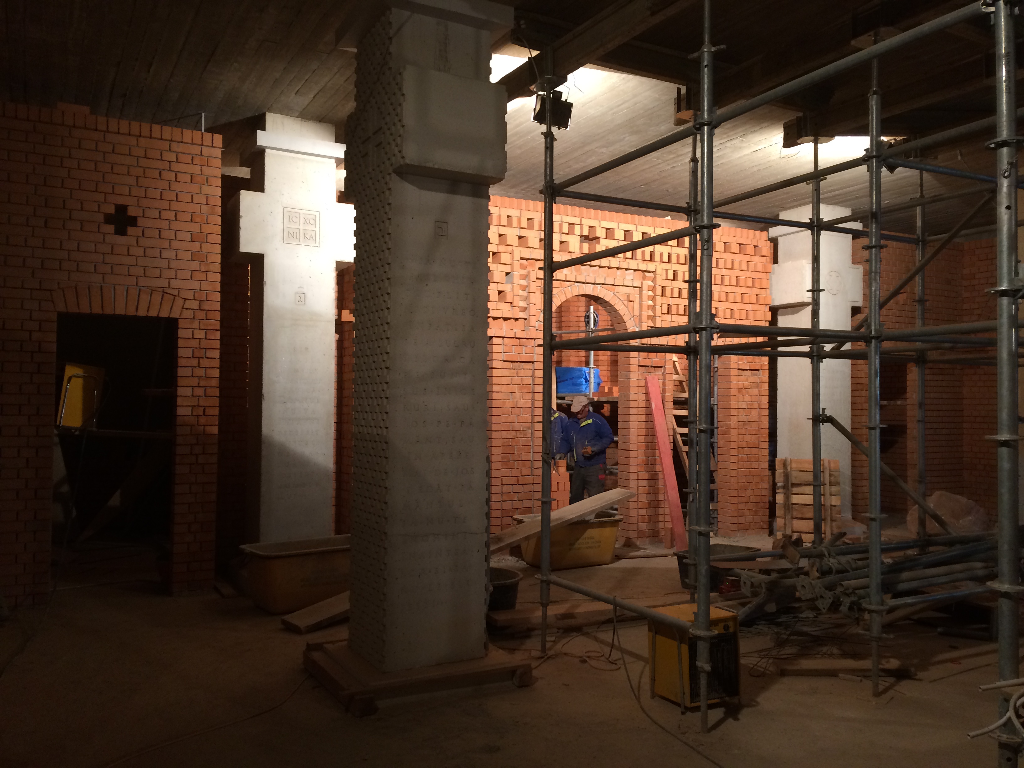 Sala de sub biserica aşezământului se va numi Sala Crucilor. În ea se găsesc şi cele 10 coloane portante, având inscripţionat, fiecare din ele, textul uneia din cele 10 porunci din Decalog, punând în evidenţă legătura dintre Vechiul şi Noul Testament. Aceasta are exact forma bisericii şi va funcţiona în prima etapă ca şi loc de slujire, iar ulterior va putea fi utilizată în acest scop la nevoie. Iconostasul acesteia a primit forma definitivă, urmând doar să fie finisate rosturile dintre cărămizi şi să i se adauge icoanele.