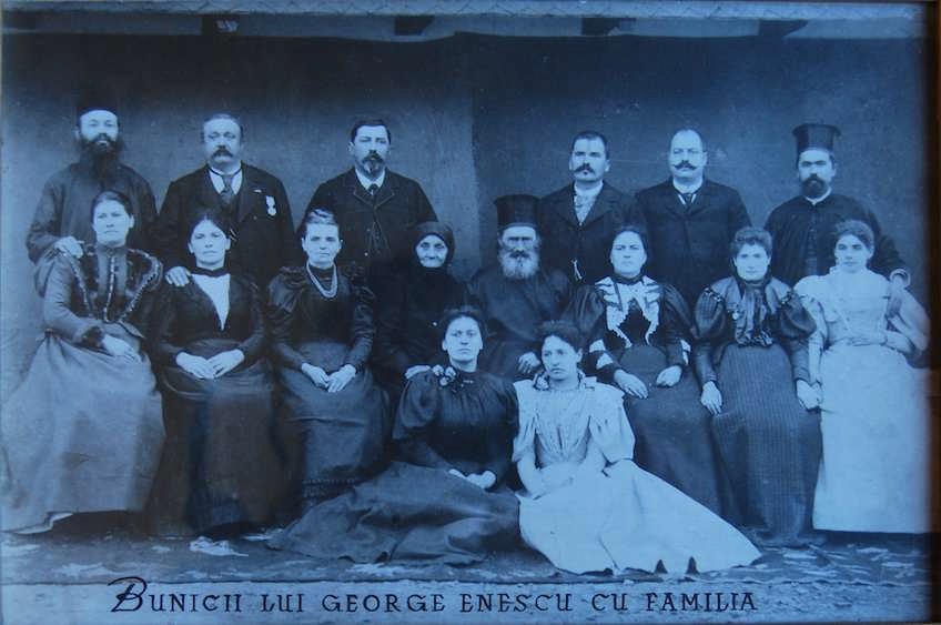 Bunicii lui George Enescu, preotul Gheorghe Enescu cu soția sa Elena (în mijlocul imaginii), împreună cu părinții, Costache și Maria (imadiat în stânga lor), unchii și mătușile compozitorului.