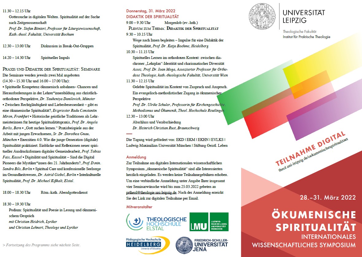 Zwischen 28.-31. März findet ein internationales wissenschaftliches Symposium zum Thema Ökumenische Spiritualität. Mehr Details über Organisatoren, Programm, Teilnehmer und Teilnahme hier und unten