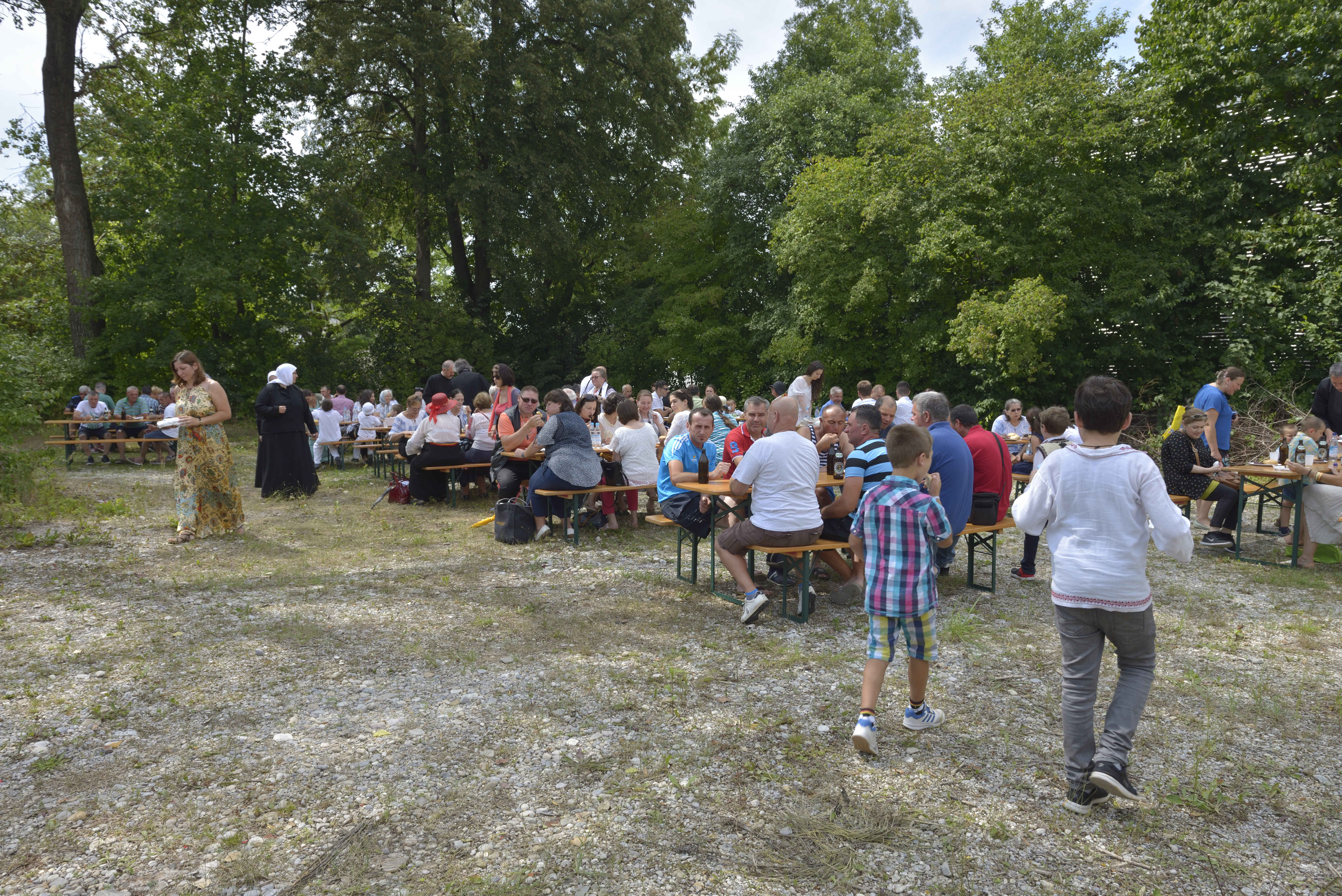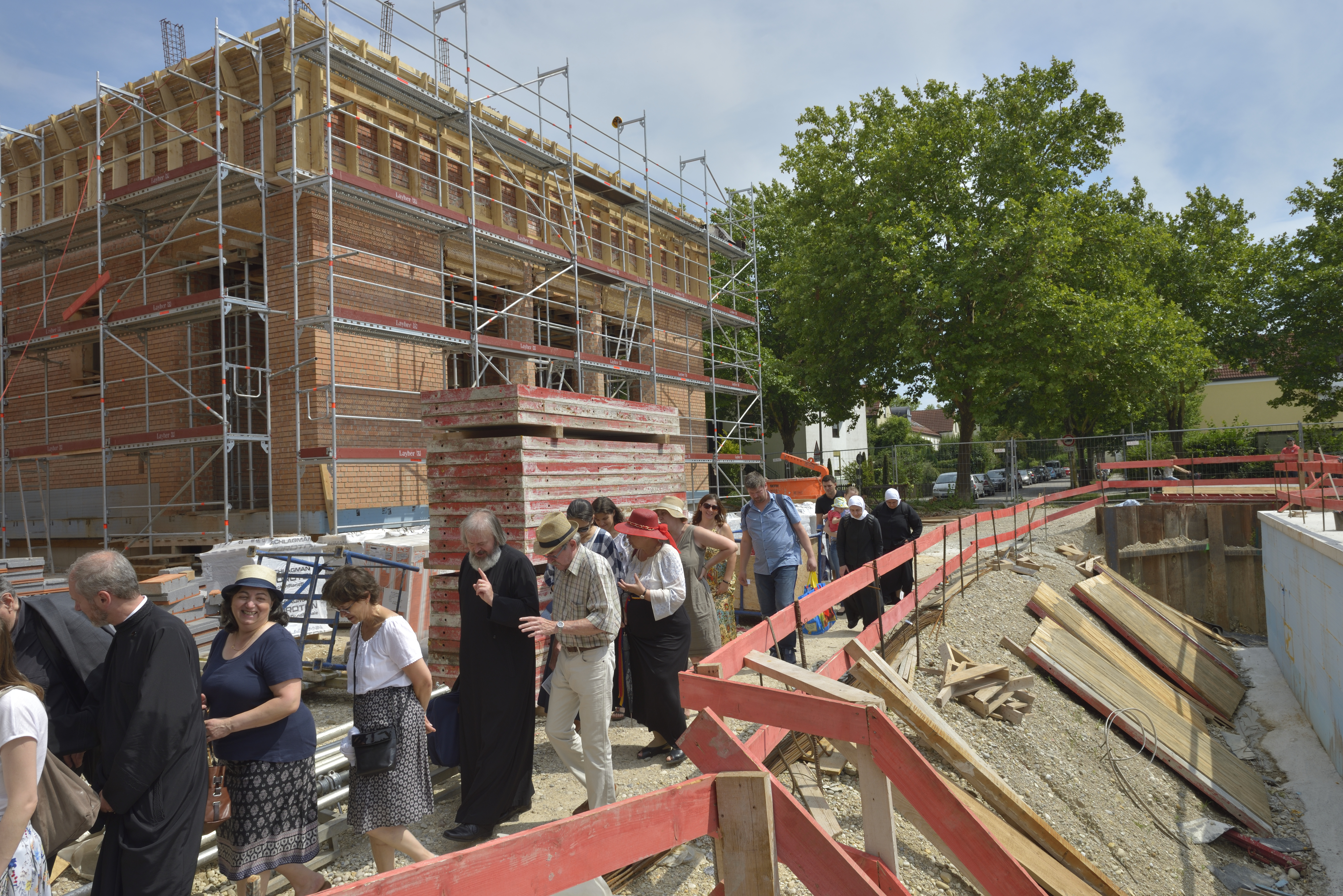 Sonntag, den 28.Juli, hatten wir die Freude, das erste Gebet innerhalb des in Bau befindlichen Refektoriums des zukünftigen Klosters in München auszusprechen. Danach hatten alle Anwesenden die Gelegenheit in die im Bau befindliche Kirche einzutreten und Informationen, bezüglich des Projekts und der Durchführung der Bauarbeiten zu erhalten. Anschließend gesellte sich zur Freude über das Erreichte und zur Hoffnung auch das Vergnügen, in einer Atmosphäre der Freude und der Gemütlichkeit beisammen bei Tisch zu sitzen.