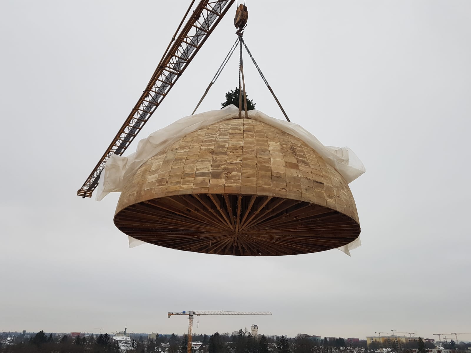 Gott hat es so eingerichtet, dass das Jahr 2018 sehr fruchtbar für unser kirchliches Anwesen verlaufen ist. Die Bauarbeiten, begonnen Mitte November 2017, sind sehr gut fortgeschritten, so dass jetzt, Mitte Dezember 2018, der Ort völlig anders aussieht. Das Hochmauern der Kirche ist bis zum oberen Teil des Turmes fortgeschritten, so dass die letzte Handlung, bevor die Handwerker in die Ferien gegangen sind, die Montage der Schalung für das Mauerwerk der Turmkuppel war. Das Gebäude des Klosters ist ebenfalls errichtet worden, und es wurde mit den Dacheindeckungsarbeiten begonnen. Das Gebäude des Gemeindehauses ist bis Oberkante des 1.OG ausgeführt worden, über das die Stahlbetondecke gegossen wurde.
