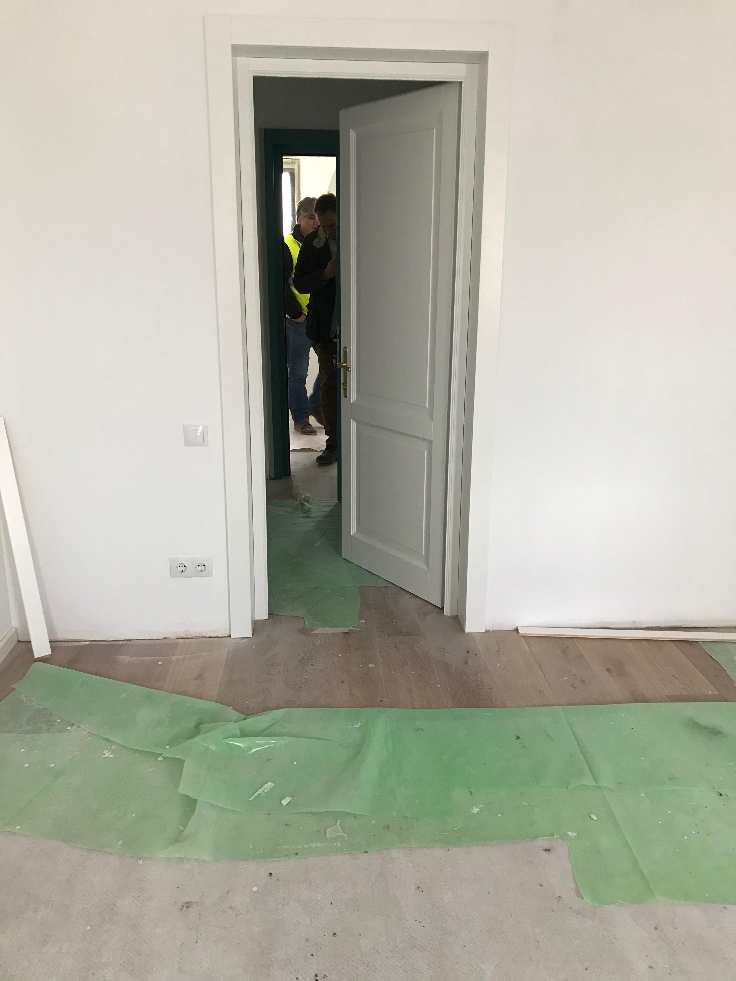 Ende Januar begann man mit der Verlegung der Steinböden. Zuerst wurden die Steinböden in den oberen Stockwerken des Klosters verlegt, dann wurden die Steinplatten in der Kirche eingebaut.