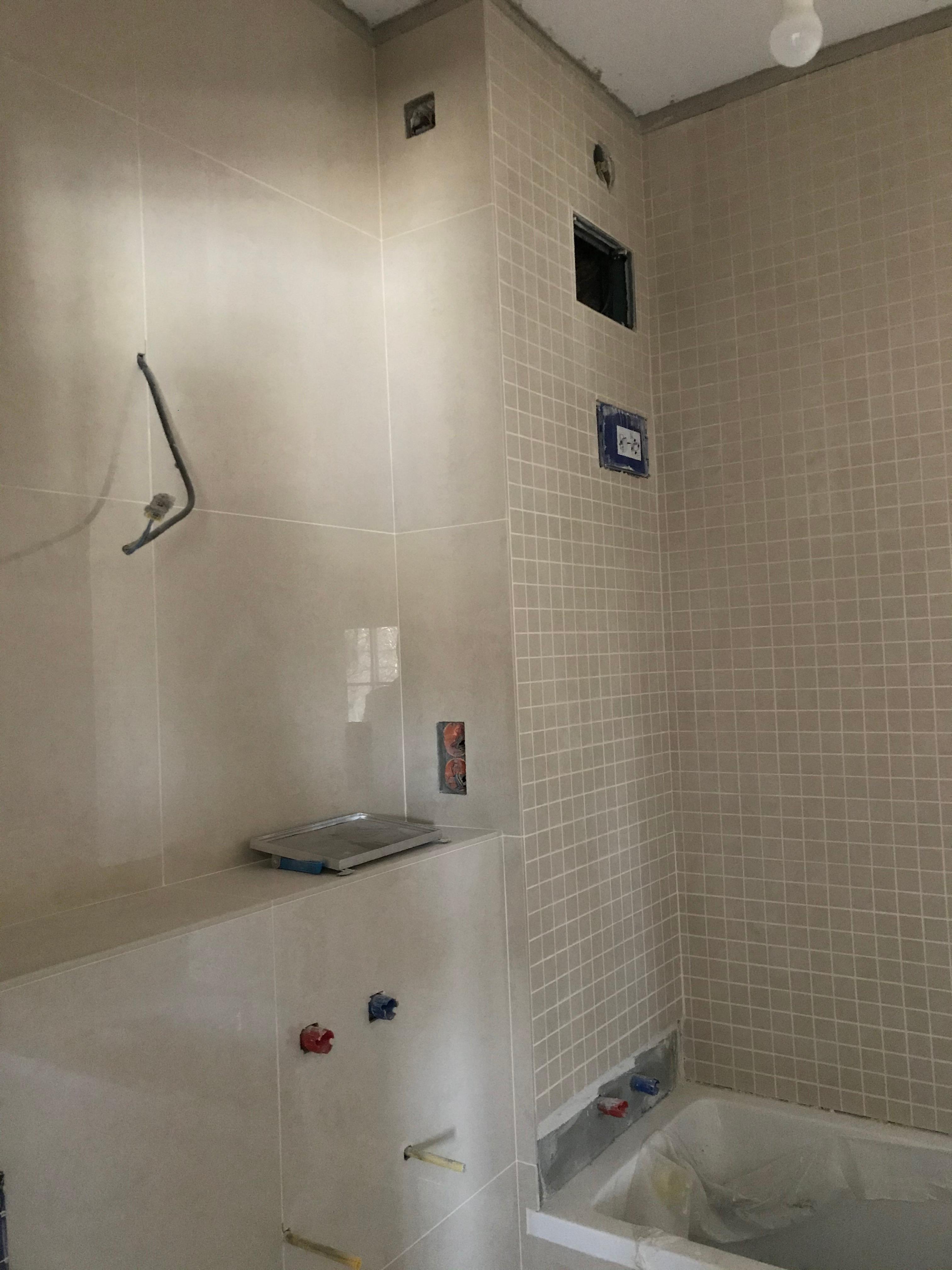 An den Gebäuden B und C ( Pfarrgemeinde-Zentrum bzw. Kloster ) wurden die Arbeiten an den elektrischen und sanitären Gebäudeausrüstungen, die Arbeiten am Trockenbau und verschiedene andere Feinarbeiten (einschließlich Fliesenlegen) fortgesetzt. Diese Aktionen sind in einem Umfang von 90 % fertig gestellt. In diesen beiden Gebäuden wurden weiter Türen und Fenster eingebaut und die damit unmittelbar verbundenen Feinarbeiten durchgeführt. Der Holzfußboden, bzw. der Parkettfußboden wurde in beiden Gebäuden in einem Umfang von etwa zwei Drittel verlegt.