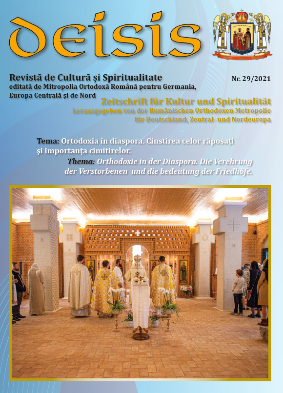A apărut noul număr al revistei Deisis (29/2021), dedicat Ortodoxiei din diaspora, cinstirii celor adormiți în Domnul, precum și importanței spirituale și culturale a cimitirelor. Tematica revistei se referă la cele două teme principale proclamate de Sfântul Sinod pentru anul 2021, dar conține și două articole importante dedicate tinerilor din diaspora românească. Este o ediție specială dedicată chiar celor care trăiesc în afara granițelor țării, dar cu ea în suflet, precum și cu dorul de locurile natale.